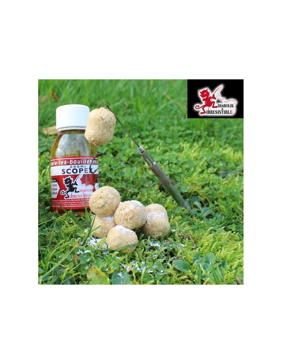 Découvert dans les années 80 pour la pêche à la carpe, ce chef d'oeuvre reste indémodable et continue d'afficher des statistiques impressionnantes. Réalisé à partir d'une odeur de pommes fermentées, son goût plait énormément aux carpes dans n'importe quel types de plans d'eau. N'hésitez pas à l'utiliser dans toutes sortes de mix fruités ou poissons, l'arôme scopex vous réserve encore quelques bonnes surprises. Les bouillettes Scopex ont souvent fait le bonheur des débutants et restent une référence dans la pêche à la carpe. Vous pouvez fabriquer des bouillettes scopex et les utiliser toute l'année, et sur toutes sortes de plans d'eau, cette bouillette prend du poisson partout. Pour renforcer le côté sucré de vos bouillettes maison, nous vous conseillons de rajouter 5grs de Supersweet pour 1 kg de mix.