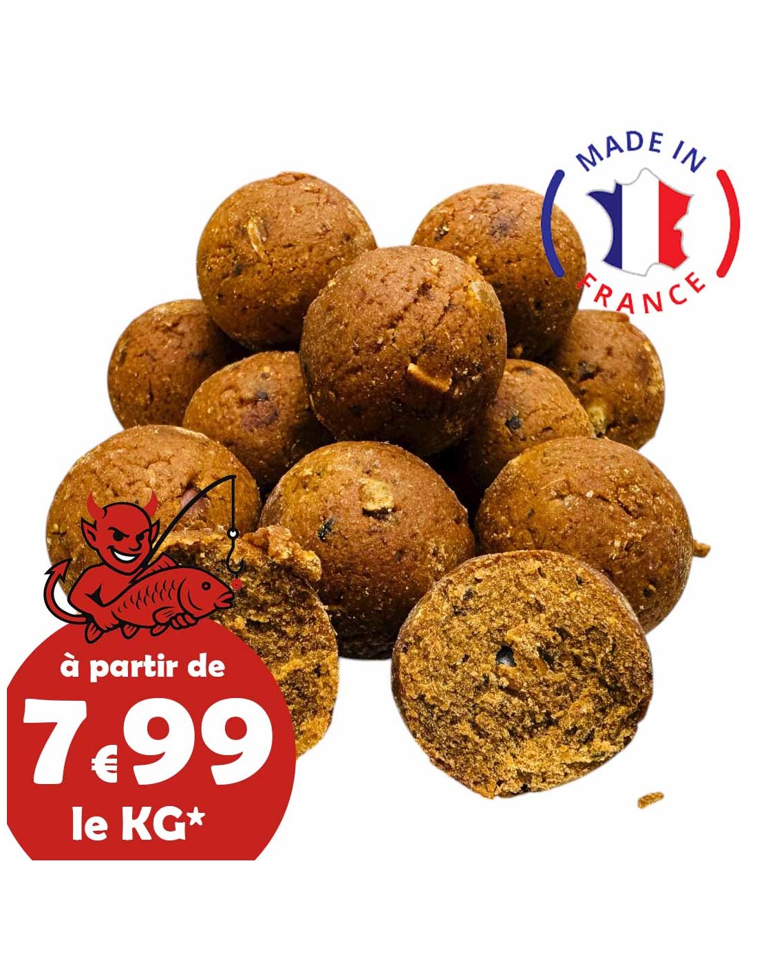 Attirez les plus grosses carpes avec notre bouillette ail foie , disponible en diamètres 16mm, 20mm, 24 mm, parfaites en combinaison avec des pop-up ail foie ou épicées. Notre bouillette ail foie artisanale est une valeur sure idéale pour la pêche de nuit ou de jour à ne jamais oublier dans son attirail de pêche sous aucun prétexte.